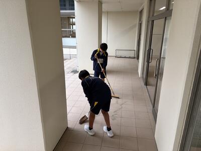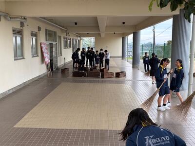 3年生が体育館を中心に机やいす等の設置、2年生は校舎内とその周辺をきれいに掃除しました。