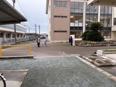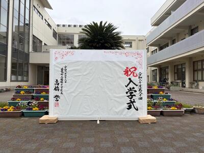 下校時には、昇降口前にセットされた”入学記念フォトスポット”で多くの方々が笑顔で記念撮影されていて、制作した職員もその姿を見て大変喜んでいました。新入生の皆さんの記念になれば幸いです。