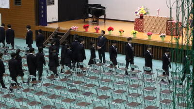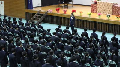生徒の意見発表の後、校長先生よりお話があり、「”修了”とは何か?」という質問にじっくり考えていました。