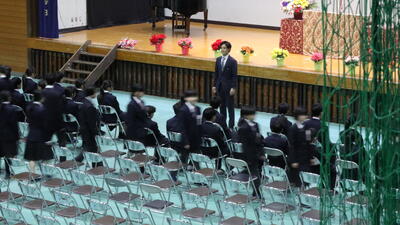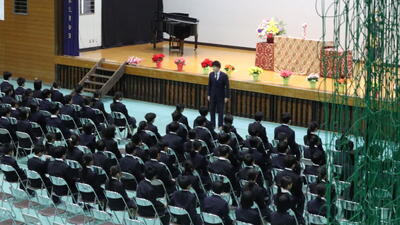高橋校長の式辞では、「入学の喜びを抱えながら、中学校生活で頑張りたいと思った決意を大事に、何事にもチャレンジしてください。」といったメッセージが新入生に送られました。