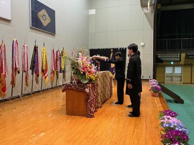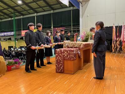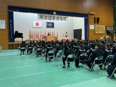 卒業式準備を終えた3校時、3年生が体育館に入場して、後期後半の表彰、及び修了式を行いました。