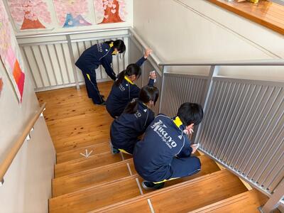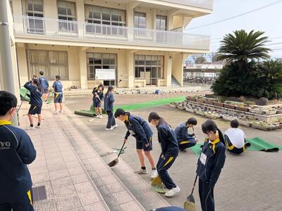 また、1年生は主に体育館の外や校舎内を掃除しました。1年生は明日の卒業式に出席できませんので、3年生への感謝の思いを込めて、気持ち良くおもてなしするための環境整備に一生懸命に取り組んでいました。