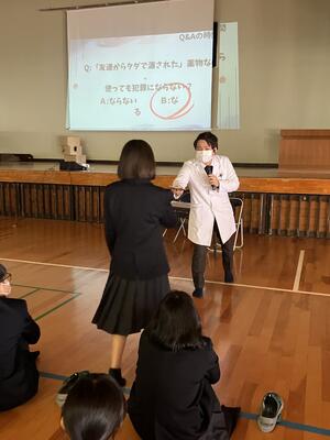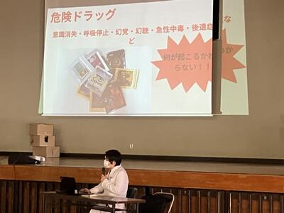 西田先生からは、薬物の依存性や身体へ及ぼすダメージについて、また社会へ及ぼす影響等について、動画やスライドを用いて多くの内容を紹介していただきました。
