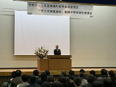本研究は、菊陽町より学力充実推進校の研究指定を受け、テーマ「夢の実現に向かって自ら学び続ける生徒の育成」のもと、昨年度から2年間にわたって取り組んできました。その際には、協力いただいた助言者の方々に直接ご指導いただき、改善のための多くの助言をいただきました。