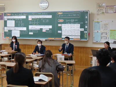 その後、7つの授業会場に分かれて授業を参観しました。授業後にはそれぞれに活発な意見交換が行われ、今後の更なる学力充実に向けて話し合いがされました。