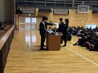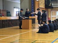 生徒会役員任命式及び感謝状贈呈に引き続き、表彰及び生徒意見発表等が行われました。