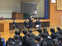また、生徒会役員代表として発表した浅田さんからは「8時昇降口通過」を全校生徒で取り組んでいるのは何故なのか、あらゆる視点で時間を守ることの大切さを述べられました。新年最初の登校日には、全員が8時昇降口通過できるように頑張りたいですね。