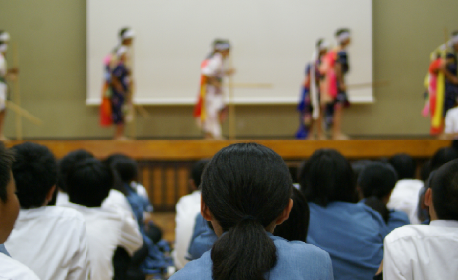 安房中学校からは民族舞踊や屋久島の見所紹介などがあり、生徒たちはしっかりと見学していました。