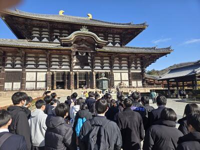 本日はこの後、バスに乗って奈良公園に移動します。奈良公園内の東大寺大仏殿や南大門を見学予定です。大仏さんとたくさんの鹿さんが皆さんをきっと心待ちにしていることでしょう