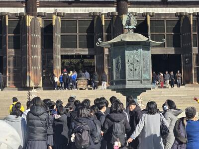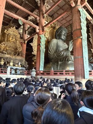 東大寺ではさらに大きな大仏様が生徒の皆さんをお待ちでした。さらに大きなスケールに感動です!