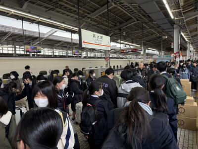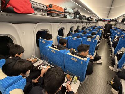 解散式後、2年生は定刻通り新幹線に乗車し、帰路に着きました。車内では早速お弁当を広げ、残り少ない時間でもたくさん笑顔の花を咲かせています。