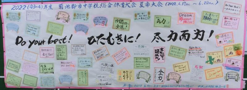 [2022.6.16]いよいよ郡市中体連大会です がんばれ、武中生! 先生たちからの応援メッセージです。 17日~20日にかけて、菊池郡市中体連大会が、各会場で行われます。みなさん、応援よろしくお願いします! (お知らせ)2022.6.1 行事予定の中に、6月行事予定表をアップしました
