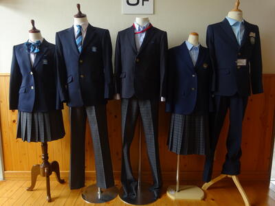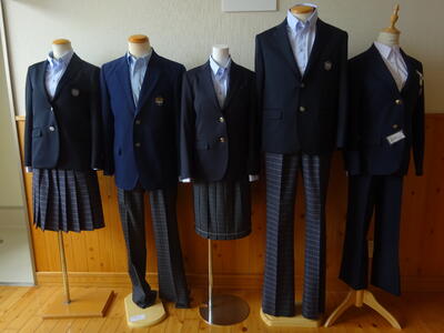 現在、本校では標準服変更の取組を進めています。 生徒の意見をこの取組に反映させるために、再度標準服サンプルの閲覧とアンケートを2・3年生の生徒を対象に実施します。 掲載している写真は、標準服サンプルです。