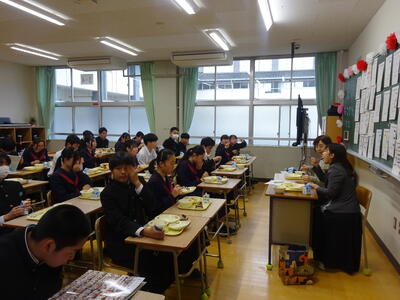 いよいよ明日は卒業式です。入試を終えて、少しほっとした3年生ですが、中学校最後の1日を元気に過ごしていました。