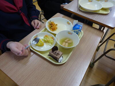 最後の給食でした。今日はお祝いにケーキがついていました。