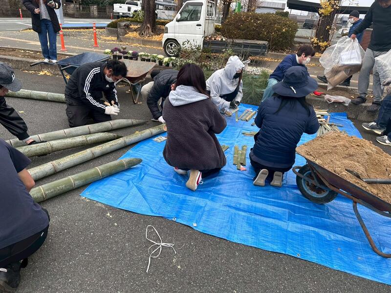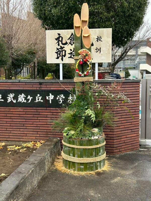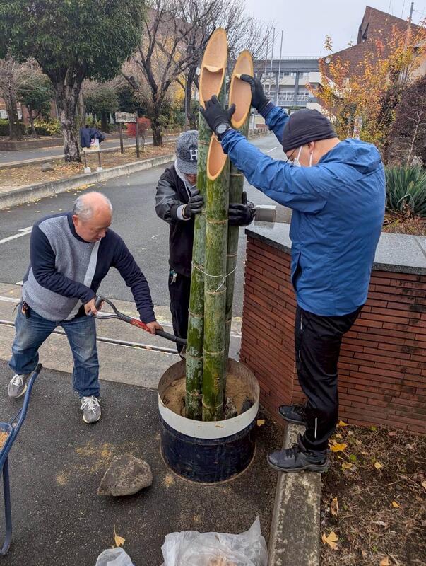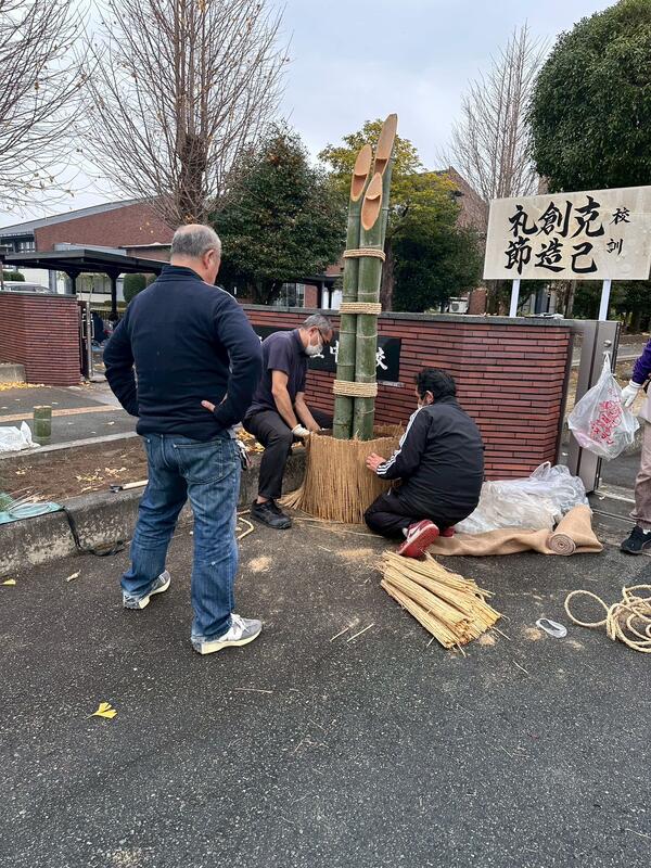 PTAおやじ委員会では、12月13日(土)に門松づくりを行いました。昨年度の経験者の方のアドバイスを受けながら、竹を切って組み上げ、立派な門松ができました。ありがとうございました。