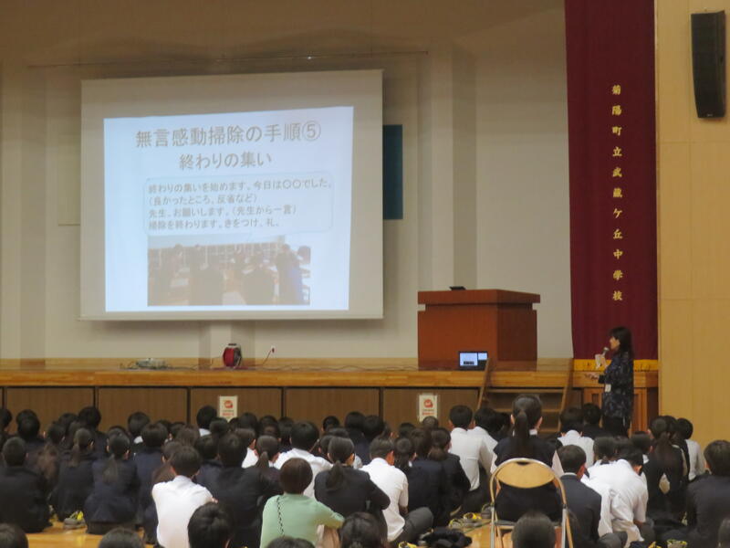 全校学活では、全校生徒が揃って、掃除の仕方や給食のやり方について確認しました。2,3年生はあらためて確認しながら、1年生はしっかりやり方を覚えようと真剣に聞いていました。また生徒会活動についても紹介がありました。生徒会テーマ「輝」~1人1人の個性が輝く武中~ を意識して、それぞれの個性を発揮していきましょう。