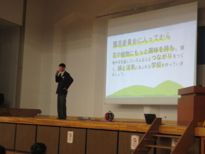 3校時は「全ての人の心に残る卒業式を実現するための全校集会」です。1年からは3年生へのメッセージ、2年生は3年生へ合唱のプレゼントを贈っていました。3年生は卒業式の歌を下級生に披露してくれました。