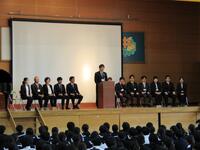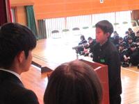 生徒代表歓迎の言葉では、生徒会執行部のIさんから、「合志中は、とても明るく元気で団結力があります。新しく来られた先生方も、一緒に楽しい学校生活を創っていきましょう。これからよろしくお願いします」との言葉がありました。
