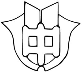 校章の由来 甲佐中学校は昭和45年4月1日を以って,甲佐町立甲佐中学校,緑川中学校の2中学校を統合して発足した。校章は,甲佐神社に伝わる甲佐の地名の由来をもとに,かぶと甲の「くわがた」と阿蘇神社家紋の鷹の「矢羽根」をデザイン化したものである。 |
