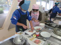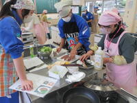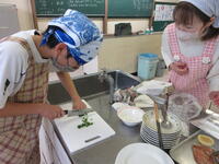 本日、2年生が家庭科の調理実習を行いました。「日常食の調理と地域の食文化」④魚の調理という題材の中で、天草市から提供いただいたブリの調理に挑戦しました。6つの班でそれぞれ違うメニューに挑戦しました。今回も地域の食生改善推進員の皆様に各班に一人ずつ入っていただき、安全によりおいしくできるようにアドバイスや補助をしていただきました。本当にありがとうございました。各グループともに大変おいしく仕上がりました。感謝申し上げます。また、新鮮でおいしい「天草ぶり」を提供いただいた関係の皆様にもお礼申し上げます。大変ありがとうございました。