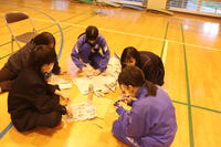 12月11日の夕活の時間は、全校でSST「クリスマスツリーをつくろう」を実施しました。材料は新聞紙2日分、ガムテープ、台紙用の段ボール、マジックのみとし、縦割り班4,5人で「工夫し合う、アイデアを出し合う、そしてその楽しさをシェアする こと」をテーマとして学習を行いました。序盤は、工夫し合う、アイデアを出し合う、そしてその楽しさをシェアするということに近づけないグループも少しありましたが、後半からは、まさにテーマ通りの活動になったように思います。それぞれのグループの工夫やアイデアがしっかり出たツリーが30分ほどで完成しました。熱心な取組、大変すばらしかったです。次回は、「クロスロード~防災に向けて~」を予定しています。