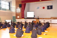 本日6校時に、2学期の人権学習での学びの交流と人権意識の高揚を図ることを目的として2学期の人権集会を実施しました。最初に校長先生からお話をしていただいた後、各学級・学年から2学期の人権学習での学びの交流(発表)を行いました。次に今年度の「人権こども集会」での発表(2校の実践発表)をオンデマンドで視聴しました。最後に本日の人権集会での学びを交流するとともに「本校の人権宣言」を全校生徒で唱和しました。その後は各教室に戻り、本日のまとめを記録しました。今後に向けて、全員が本校の人権宣言に示している行動目標の日常化を目指していってほしいと思います。