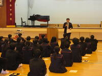 12月24日(水)の終業式の前に、新生徒会役員の任命式と新委員長や学級委員の委嘱状の伝達式を行いました。全校生徒へのアンケート結果等をもとに新生徒会役員候補の生徒が推薦され、全校生徒から全員、承認がなされました。承認後に、私から任命書を3名の生徒に手渡し、激励の言葉をかけさせてもらいました。その後は、新生徒会長から新委員長に委嘱状の伝達が行われ、式を終えました。頑張ってほしいと思います。最後になりましたが、この1年間、現生徒会長を中心に様々なことに頑張ってくれた3年生の旧役員の皆さん、本当にありがとうございました。すばらしい伝統を後輩に残してくれたことに感謝します。