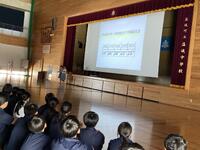 今回も昨年に続き、広安小学校おはなしの会「どりーむ」Plusの皆様に来校いただいて宮沢賢治原作の「銀河鉄道の夜」を朗読していただきました。体育館のステージに映し出された映像を見ながら、気持ちのこもったすばらしい朗読を聞いているうちに、お話の世界にすーっと入り込んでいきました。3年生の生徒たちもこの時間はゆったりした気持ちでおはなしを楽しんでいる様子でした。朗読会の最後には生徒代表が、感謝の気持ちをお伝えしました。あらためて宮沢賢治の作品を読み直したくなる気持ちになりました。