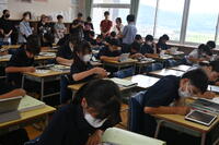 1月8日(木)令和7年度3学期始業式を行いました。早朝より冷え込みが厳しく体調が悪化する恐れがあることから、体育館ではなくリモートでの開催としました。各学年の代表生徒と新生徒会長が今年の目標や今取り組んでいることについてそれぞれ発表をしてくれました。学校長からは「目標を立てて生活することの大切さ」について全校生徒に向けて話がありました。新たな年を迎え、1人1人がさらに成長できる1年としていくことを確かめ合うことができました。