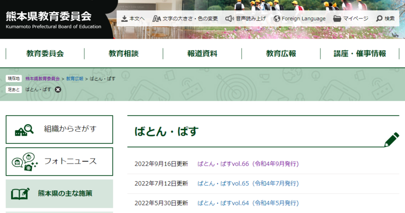 【熊本県教育広報誌 ばとん・ぱす】
