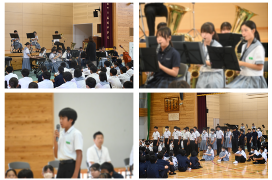 また、10月10日(金)に開催された上益城郡中学校総合体育大会駅伝競走大会では、女子優勝(全ての区で区間賞を獲得)、男子2位(2・3・5区で区間賞を獲得)という結果を残すことができましたので、あわせて表彰を行いました。県大会は、11月7日(金)に天草市あましんスタジアムで競技が行われます。皆様の応援、よろしくお願いします。