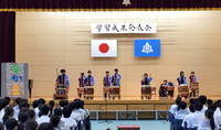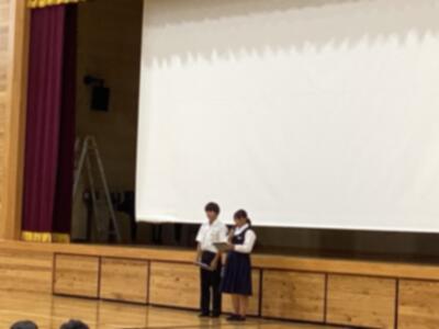 各部活動の表彰の後、保健委員会、防災委員会、学習委員会からの発表がありました。