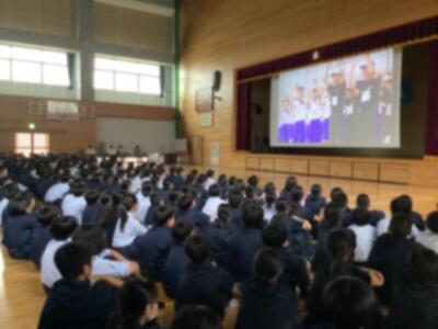 2名の3年生に、生徒たちは声援や大きな拍手を送り、温かい雰囲気に包まれました。