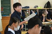 防災委員会の発表では、熊本地震のときの様子を振り返る場面がありました。