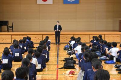 次に、教頭先生から、益城中の伝統となっている校門一礼などが過去に生徒総会で議論され、決まっていったことがあり、学校の一員として活発な意見交換をしてほしいと話がありました。