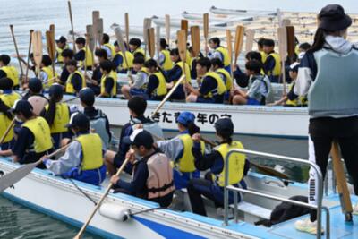 フォトウォークラリーやマリン活動、レクリエーションなど、充実した時間を過ごしていました。結団式では、教頭先生から「本当の意味での中学生になりましょう」と話がありました。