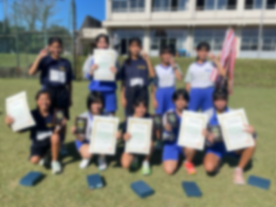 また、10月10日(金)に開催された上益城郡中学校総合体育大会駅伝競走大会では、女子優勝(全ての区で区間賞を獲得)、男子2位(2・3・5区で区間賞を獲得)という結果を残すことができましたので、あわせて表彰を行いました。県大会は、11月7日(金)に天草市あましんスタジアムで競技が行われます。皆様の応援、よろしくお願いします。県中体連駅伝大会推戴式
