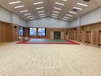 1月26日(月)に新体育館の引き渡しを終え、いよいよ新しい体育館が使用できるようになりました。照明がLED化されタブレットで調光可能となり、フロアの色合いもあってずいぶん明るくなりました。1階にはミーティングルームや多目的トイレ、2階には武道場などがあり、使いやすい環境となっています。