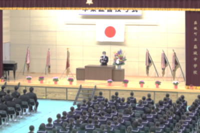 今年度も新型コロナウイルス感染拡大防止のために、来賓の方をお呼びすることもできず、在校生も吹奏楽部の生徒たちも同席できませんでしたが、保護者の皆様、町教育委員会と職員が見守る中、249名の卒業生が益城中学校を巣立ちました。