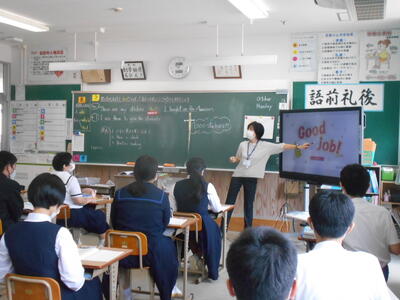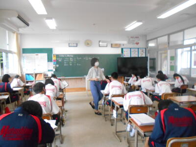 ALTのエリン先生と、比較の言い方の学習をしていました。