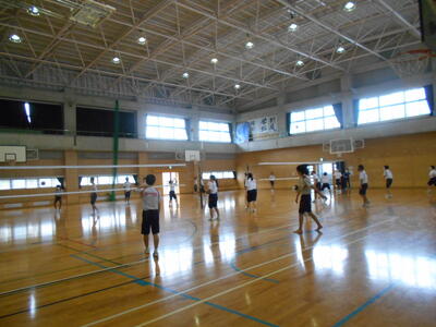 バレーボールを行っていました。ワンバウンドまでできる特別ルールで楽しく行っていました。