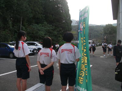 本日は生徒会のあいさつ運動の日でした。生徒会執行部と環境委員会の担当でした。スクールバス乗降地と生徒昇降口付近でさわやかなあいさつを呼びかけていました。