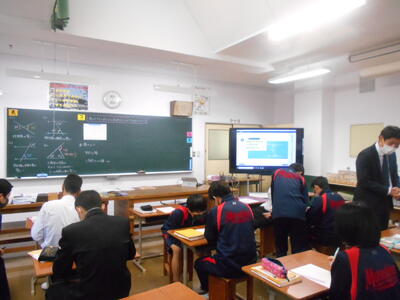 二つのコースに別れて、関数の問題に取り組んでいました。ジェットコースターなど興味深い問題でした。