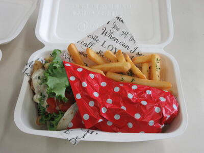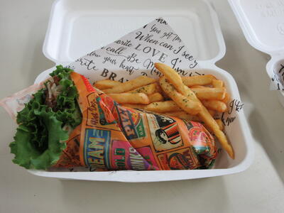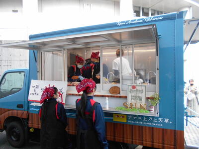 ファストフード班は、天草大王を使ったトルティーヤ。「さんはらいっぱい」さんとのコラボで商品開発が進んでいます。この日は、試作品の試食会でした。「さんはらいっぱい」の渡邊さんにつぎ分けていただきます。