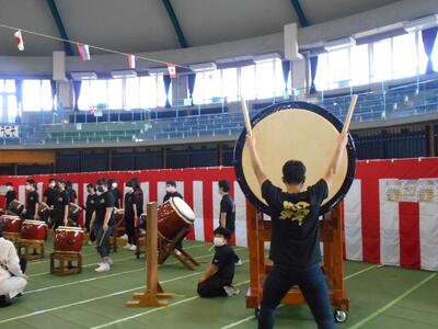 水軍太鼓の練習が本格的になってきました。コロナの影響で8月~9月の間練習ができなくて、例年より遅い状況のようですが、参加者は真剣に取り組んでいました。