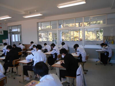 3年生は今日から後期期末テストです。1校時は国語に取り組んでいました。
