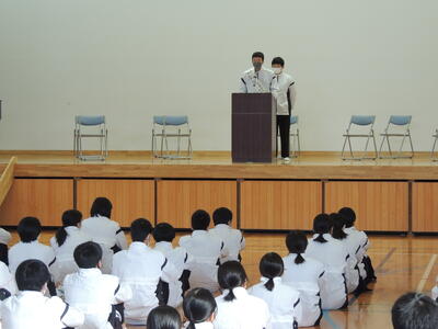 朝から生徒会のあいさつ運動がありました。新執行部、学級委員に加え、3年生も参加してがんばってくれました。冷え込んだ朝でしたが、さわやかな挨拶が飛び交いました。