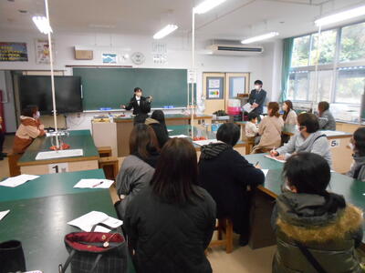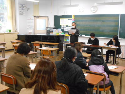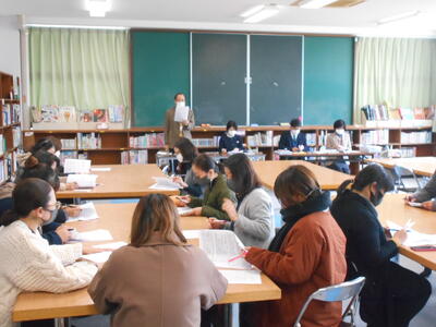 その後の授業研究会では、市の教育指導員の先生に助言をいただいて職員の研修を深めました。
