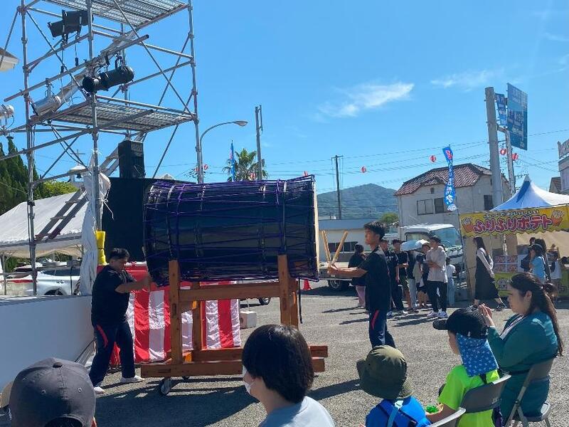 10月13日(日)第58回天草五橋祭にて、本校の生徒17名が水軍太鼓を披露しました。本年度から、総合的な学習の時間の一環として取組み始め、約一ヶ月の練習期間でしたが、勇壮な太鼓の音が会場に集まった人々を魅了していました。今後も上天草バザール(11月9日)や本校の研究発表会(11月13日)にて披露する予定です。